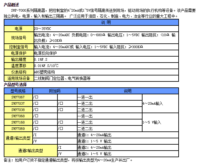 SWP7067,SWP7037,SWP7038,SWP7068,SWP7168,SWP7069,隔离器
