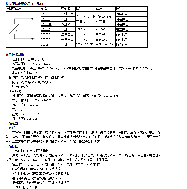 CZ3031,CZ3032,CZ3064D,CZ3067,CZ3038,CZ3086,CZ3087,模拟量输出隔离器