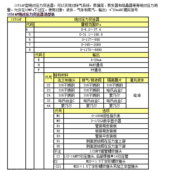 1151AP4,1151AP5,1151AP6,1151AP7,1151AP8,绝对压力变送器