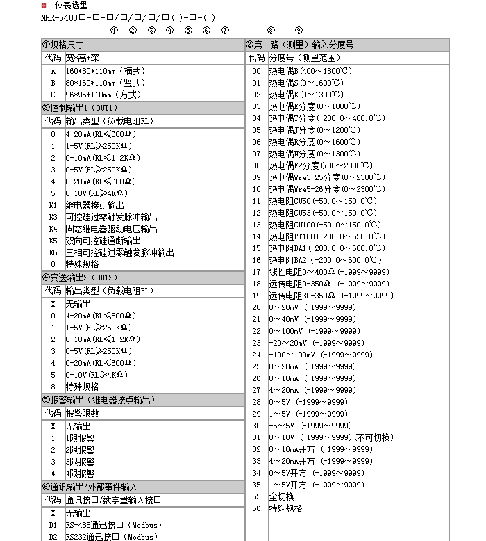 NHR-5400系列60段PID自整定调节器主要针对现场温度信号进行采集、显示、控制、远传、通讯、打印等处理,构成数字采集系统及控制系统,适用于需要进行高精度多段曲线程序升/降温控制的系统(如啤酒发酵,窑炉升温等)。 |