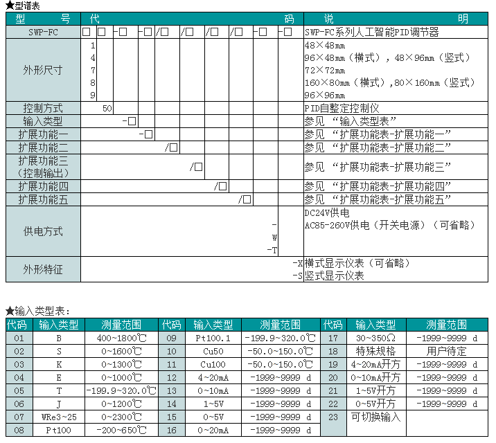 SWP-FC150,SWP-FC450,SWP-FC750,SWP-FC850,SWP-FC950,人工智能自整定PID调节器