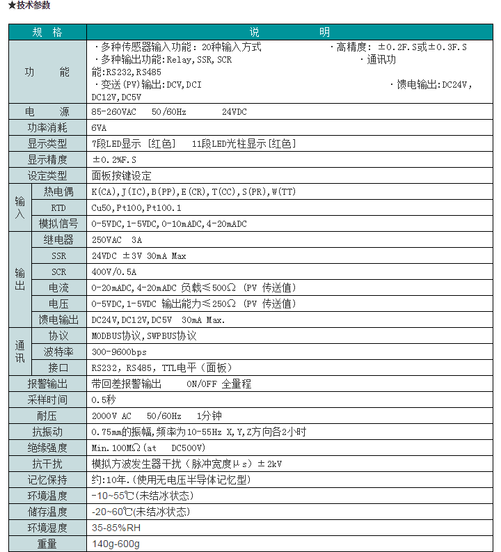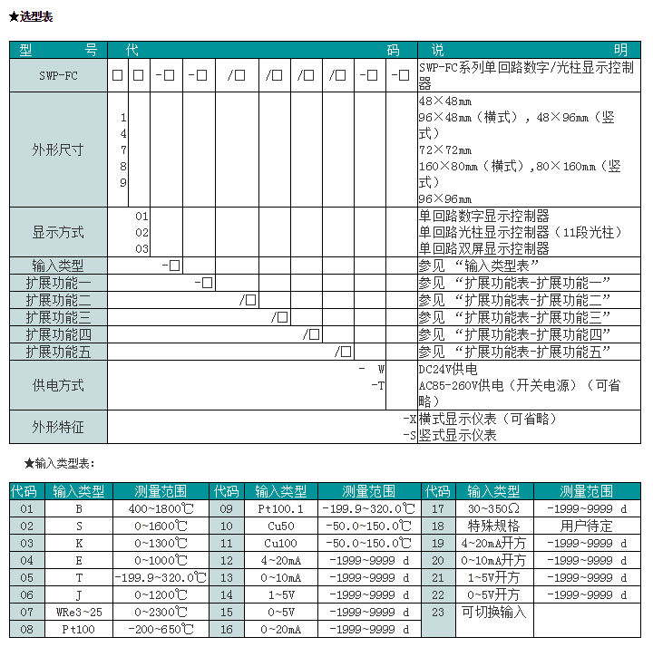 SWP-FC系列单回路数字/光柱显示控制器集数字仪表与模拟仪表于一体,可对温度、压力、液位、速度等测量信号进行数字量显示控制(高亮度LED数码显示)及相对模拟量显示(光柱显示),使测量值的显示更为清晰直观。0.2%高测量精度,通道算术运算功能,使用更为简单方便。