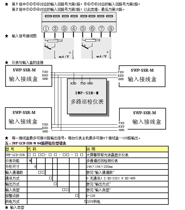 SWP-LCD-SSR-M智能化64路巡检仪是一种智能化多功能二次仪表,适合于对多输入回路进行巡回检测,报警控制及数据远传。