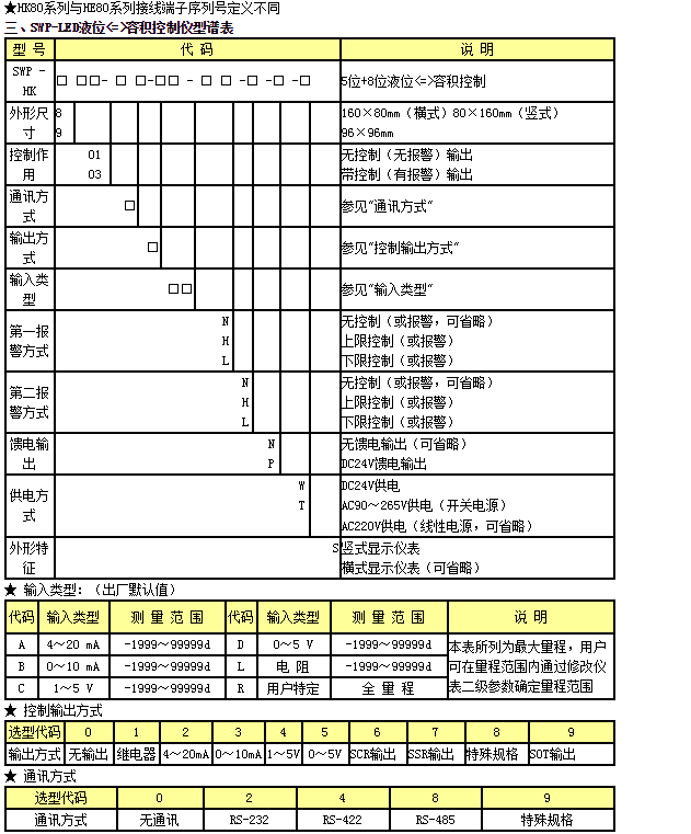 SWP-LED液位/容积控制仪可对各种形状罐体进行液位<=>容积转换测量控制。