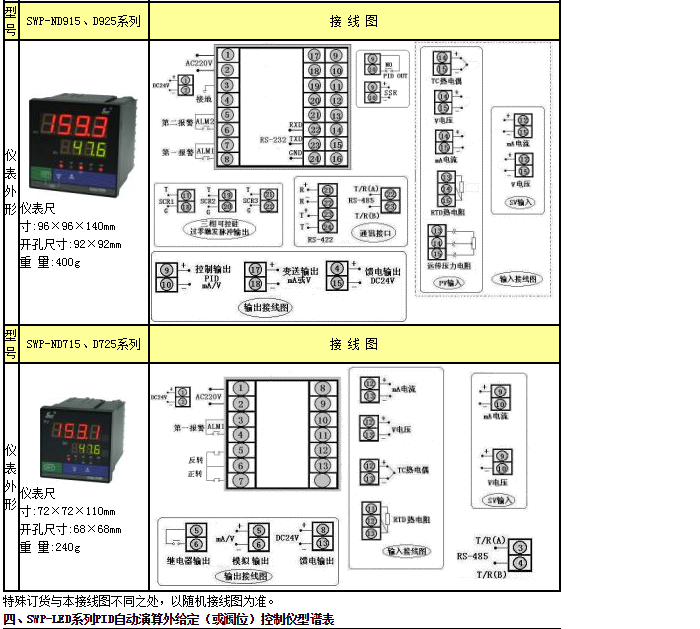 三、仪表外形及接线图(以下为基本配线,特殊订货请参考见随机接线图)