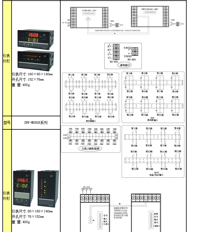 多路巡检仪各通道可同时输入不同的分度号,采用最新无跳线技术,只需设定仪表内部参数,即可将仪表从一种输入信号改为另一种输入信号。