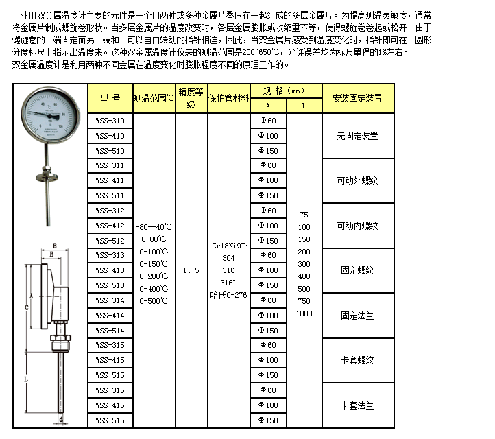 WSS-310,WSS-511,WSS-413,WSS-315,WSS-516,径向型双金属温度计
