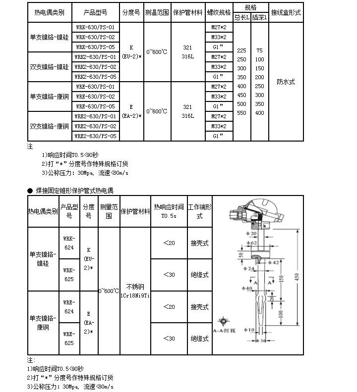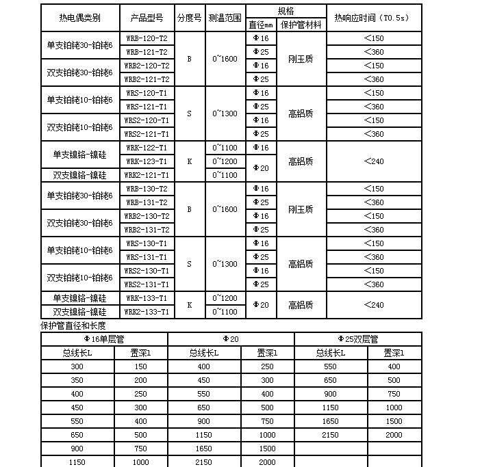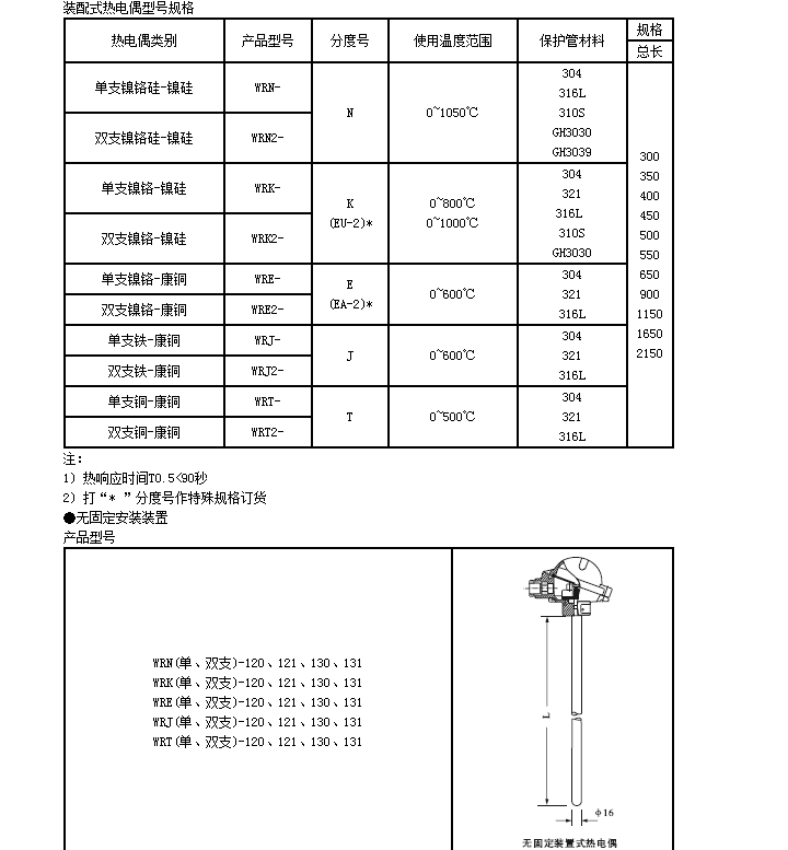 产品执行标准:IEC584、IEC1515、GB/T16839-1997、JB/T5582-91