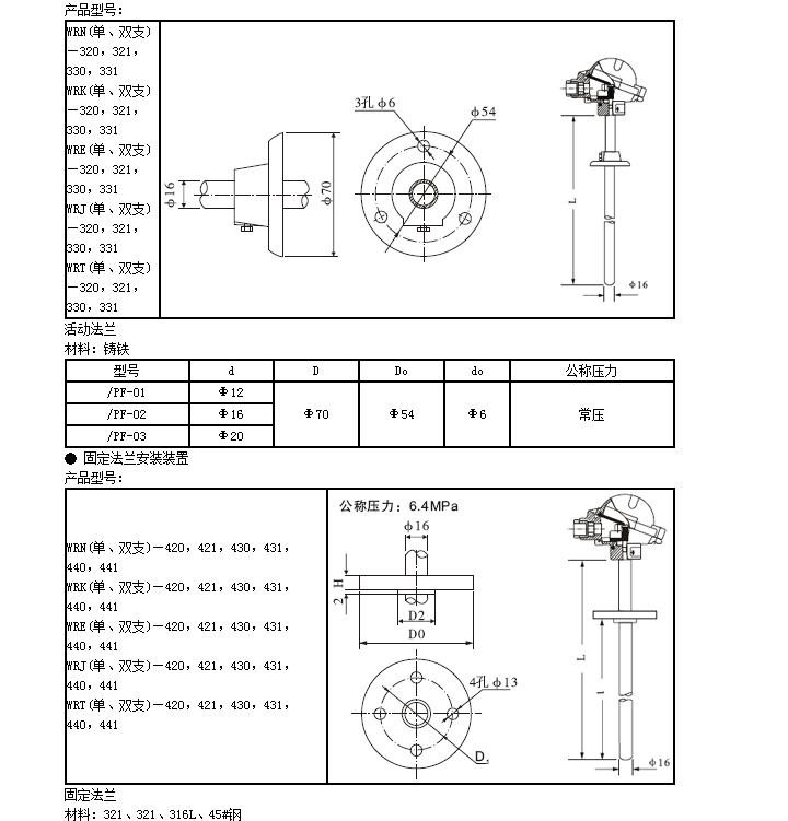装配热电偶通常和显示仪表、记录仪表、电子计算等配套使用。直接测量各种生产过程中的0°C~1300°C范围内液体、蒸汽和气体介质以及固体表面温度。 主要特点有:装配简单,更换方便;压簧式感温元件,抗振性能好;测温范围大;机械强度高,耐压性能好