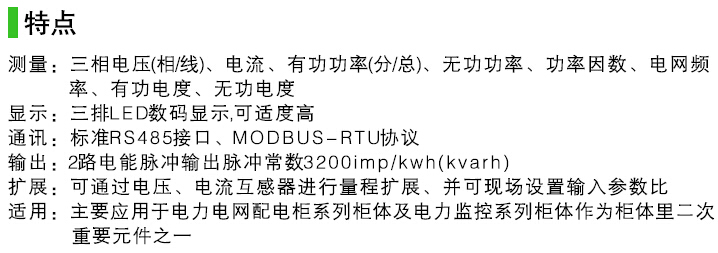 视在功率 有功电能 无功电能(计量)RS485通讯 三排LED数码管显示,96*96mm外形