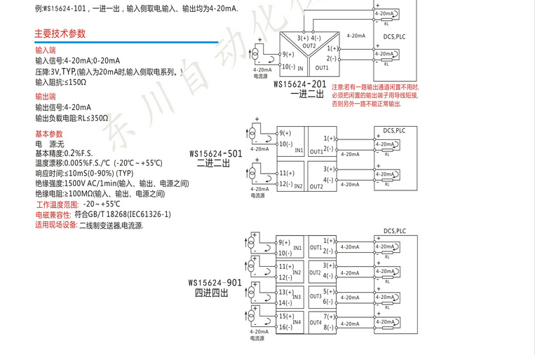 输入输出方式:一入一出、二入二出、三入三出、四入四出输入 输出范围:4-20mA模拟量信号.