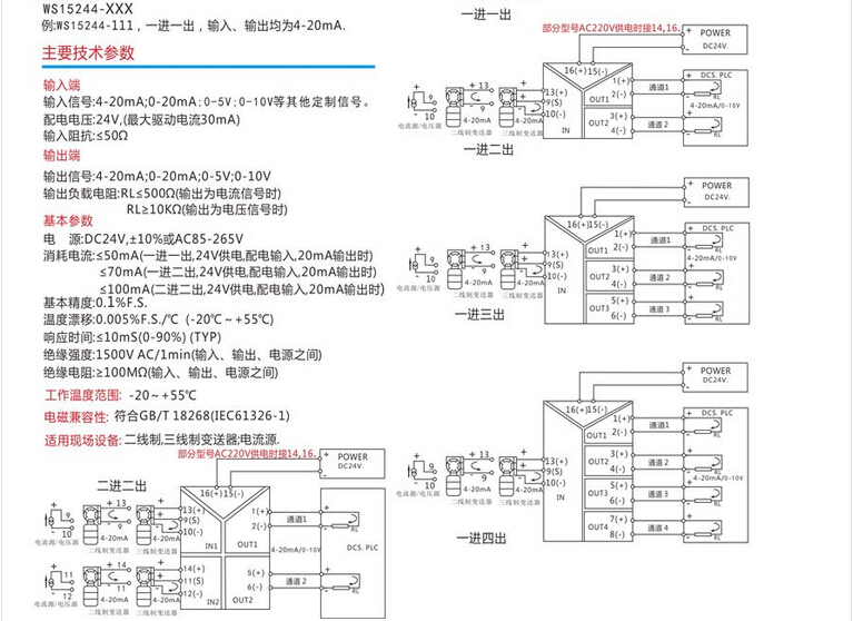 信号隔离器 隔离栅 输入输出方式:一进一出、一进二出、一入三出、一入四出、二入二出