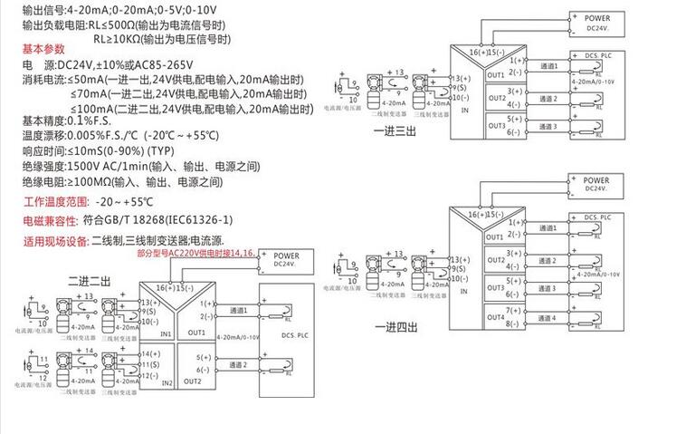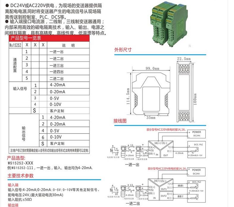 信号隔离器电源:DC24V或AC220V