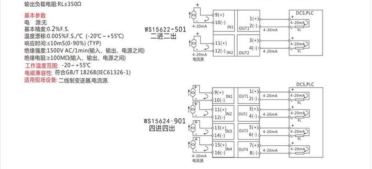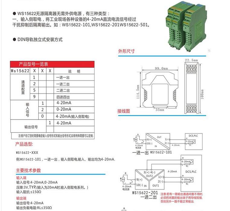 WS15622无源过程信号隔离器,全隔离信号隔离器,将输入的四路信号隔离输出,无需外接电源可正常工作,输入输出隔离,传输精度高,标准DIN T型导轨安装