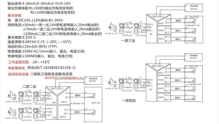 输出范围:0-10V、4-20mA、0-20mA、0-5V。1-5V,-10V等用户需要的标准信号