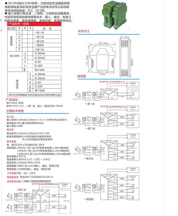WS15252信号隔离器 输入 输出4-20mA WS15242信号隔离器
