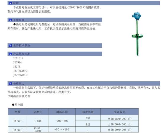 HR-WZ,HR-WZP,HR-WZC,石油化工热电阻