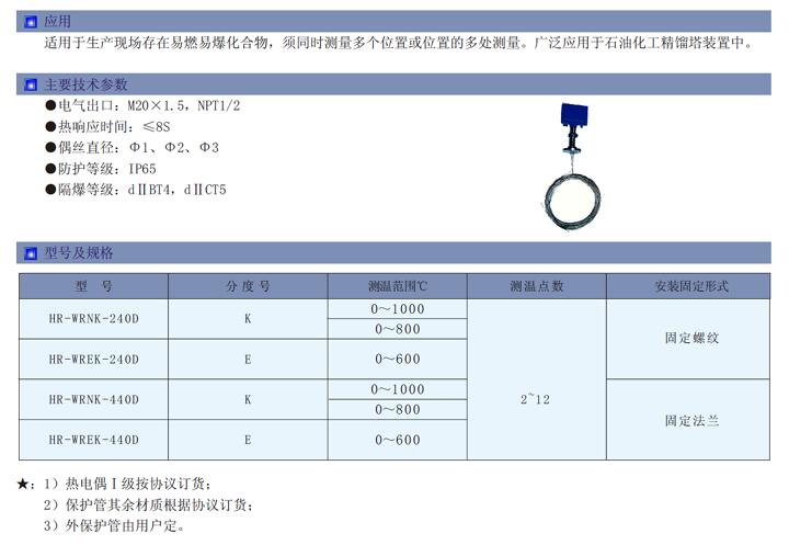 HR-WR,HR-WRNK-2400,HR-WREK-2400,HR-WRNK-4400,HR-WREK-4400,多点隔爆热电偶