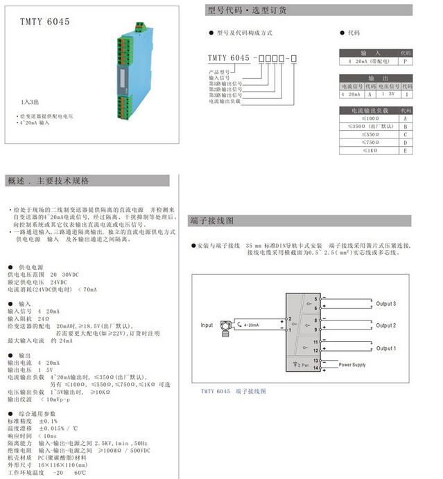 TMTY6045,TMTY6045-PA,TMTY6045-P1,1入3出 电流信号输入配电隔离器