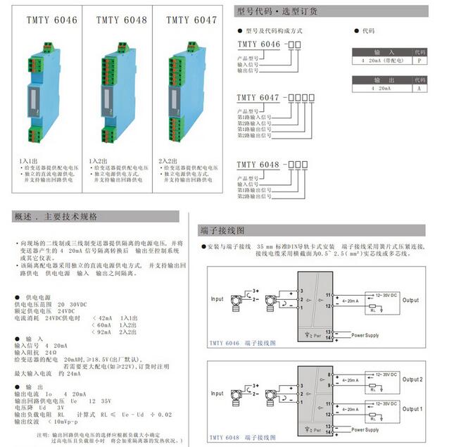 TMTY6046,TMTY6048,TMTY6047 电流信号输入配电隔离器(支持输出回路供电)