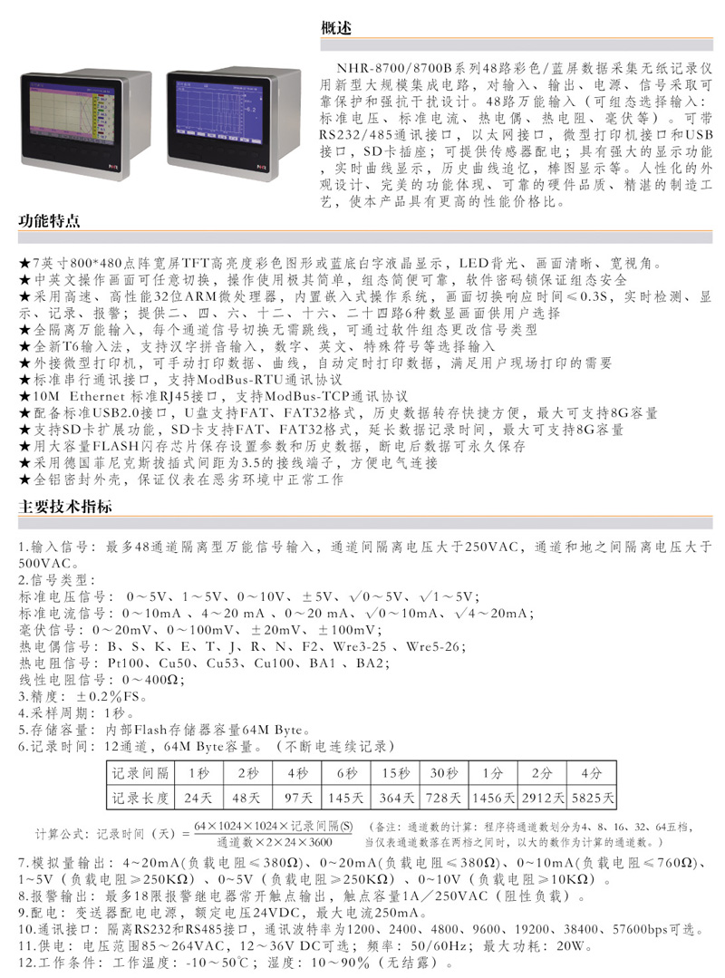 NHR-8700/8700B48路彩色/蓝屏数据采集无纸记录仪