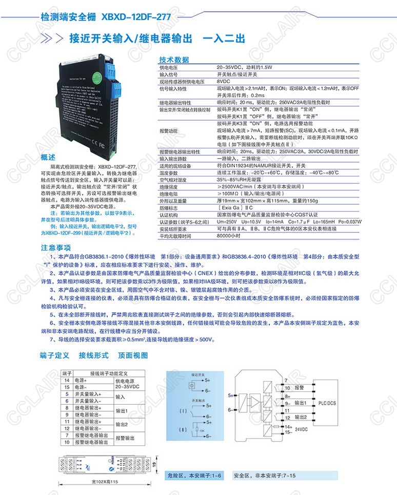 XBXD-12DF-277,XBXD-12DF-299接近开关输入/继电器输出(一入二出)