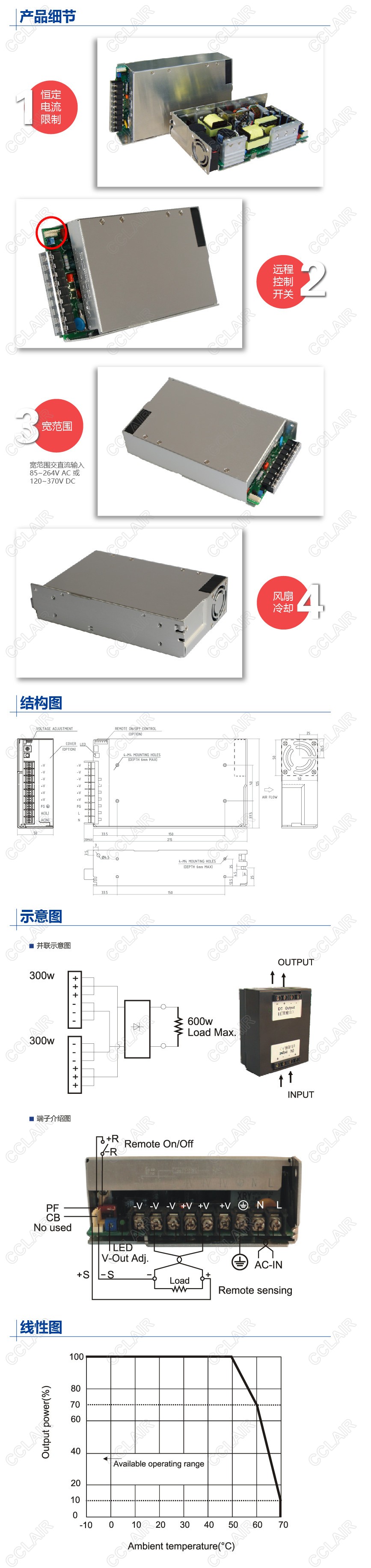CZP-DM-300-5 基板型开关电源300W/5V输出