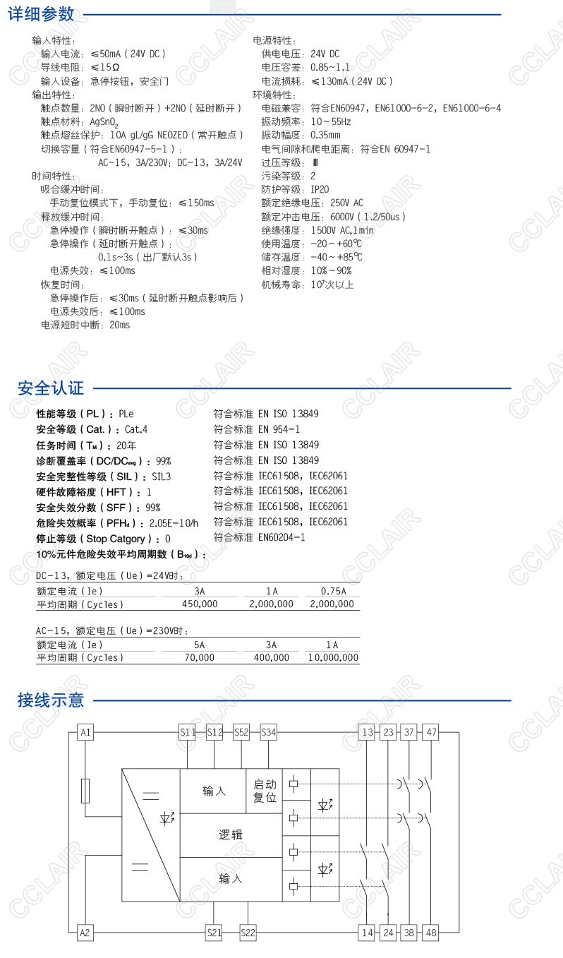 CZSR8002-2A2AT(M)是适用于急停按钮、安全门控开关输入,具有2路NO(常开)安全输出触点(瞬时断开)和2路NO(常开)辅助输出触点(延时断开)的安全继电器。它可选择单、双通道操作,手动复位,并具有通道间短路监控,复位按钮监控功能。