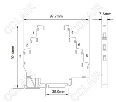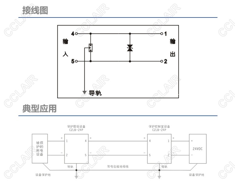 24VDC电源SPD,适合24VDC、电磁阀等电源回路,最大放电电流Imax(8/20us):10kA/线,7.6mm超薄,通过接地端子或DIN35金属导轨接地。
