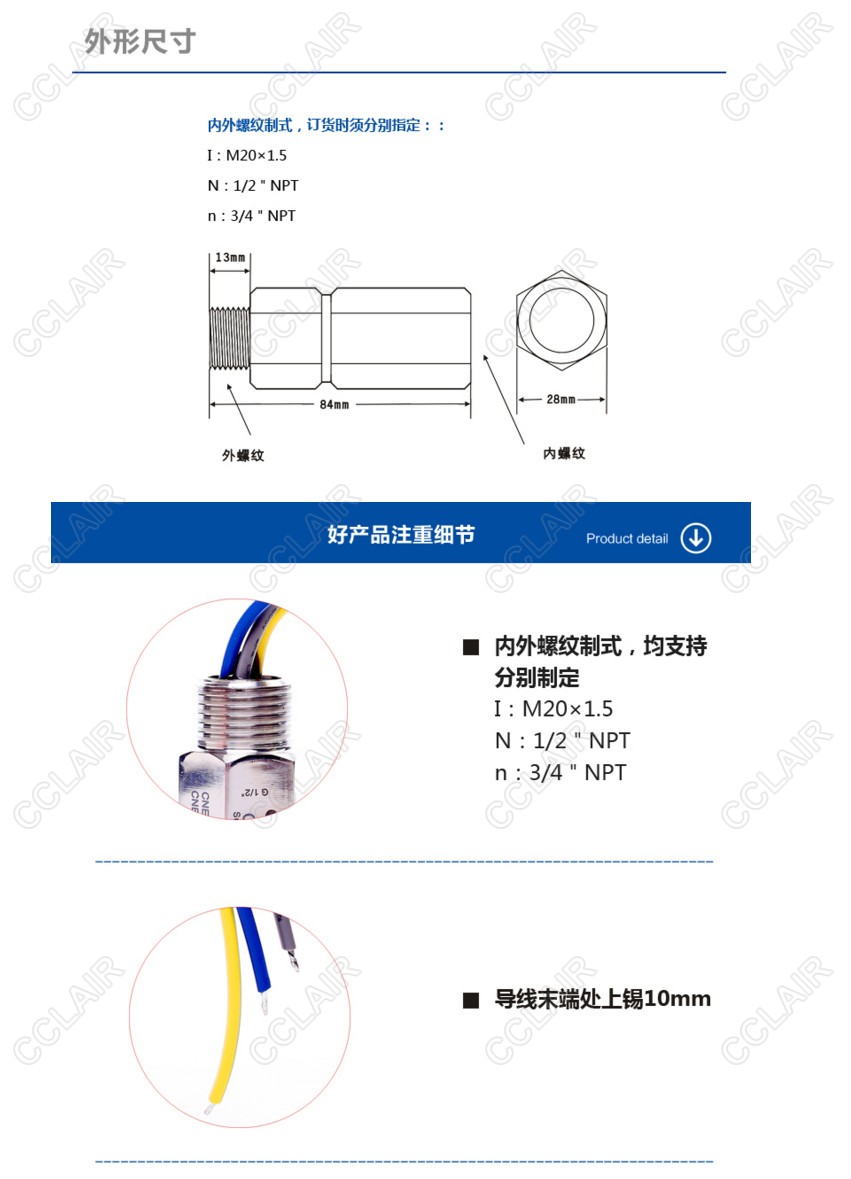 现场安装型SPD,三线制,串联安装,螺纹制式(订货时指定):M20×1.5、1/2″NPT、3/4″NPT,适合变送器、热电阻、热电偶、RS-485、RS-232、RS-422、流量计、电磁阀等现场设备的保护,隔爆、本安防爆双认证。