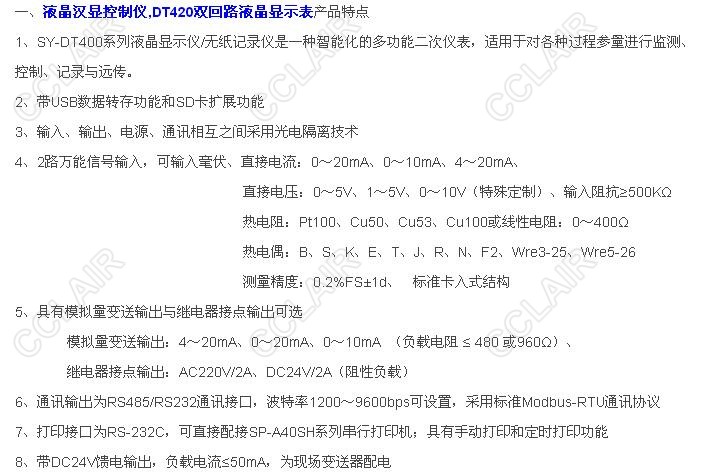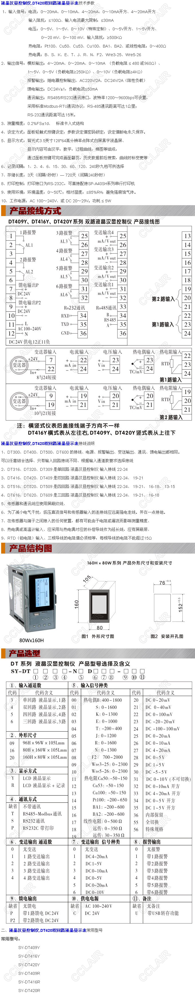 SY-DT420Y,SY-DT420R,SY-DT420YT,SY-DT420RT,SY-DT420YS,DT420双回路液晶显示控制仪