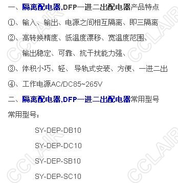 SY-DEP-DB10,SY-DEP-DC10,SY-DEP-SB10,SY-DEP-SC10,DFP一进二出信号隔离配电器