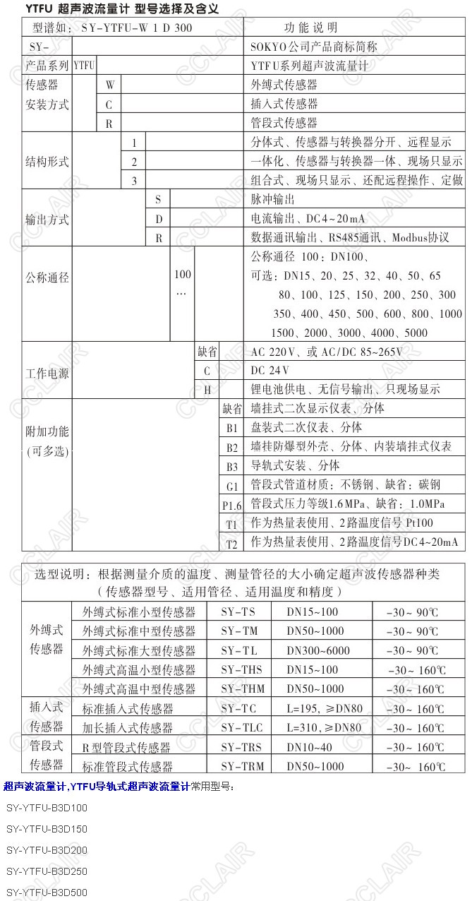 SY-YTFU-B3D100,SY-YTFU-B3D150,SY-YTFU-B3D200,YTFU导轨式超声波流量计
