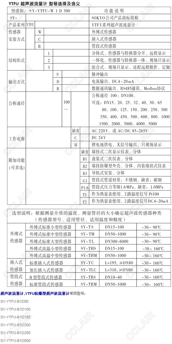 SY-YTFU-B1D50,SY-YTFU-B1D100,SY-YTFU-B1D150,YTFU防爆型超声波流量计