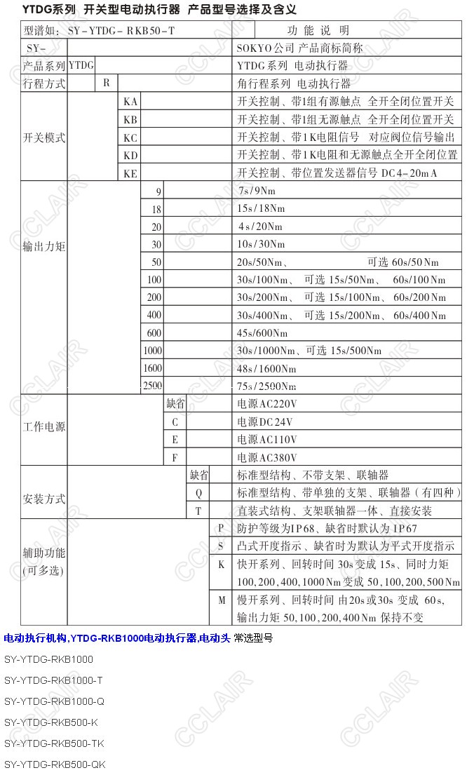 SY-YTDG-RKB1000,SY-YTDG-RKB1000-T,SY-YTDG-RKB500-K,YTDG-RKB1000电动执行器电动头