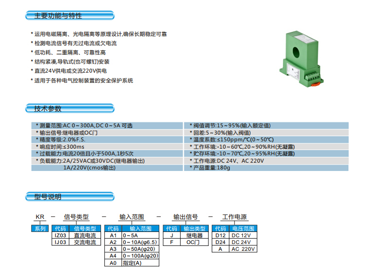 KR,KR-IZ03-A1,KR-IZ03-A2,KR-IZ03-A3,KR-IZ03-A4,KR-IZ03-A0,电流越限报警隔离变送器