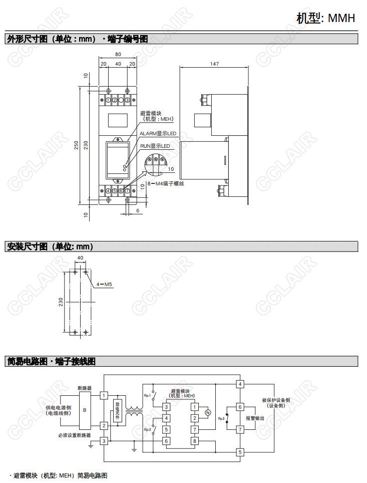 MMH-110/MMH-130/MMH-210/MMH-230,最大负载10A、30A 可更换元件避雷器