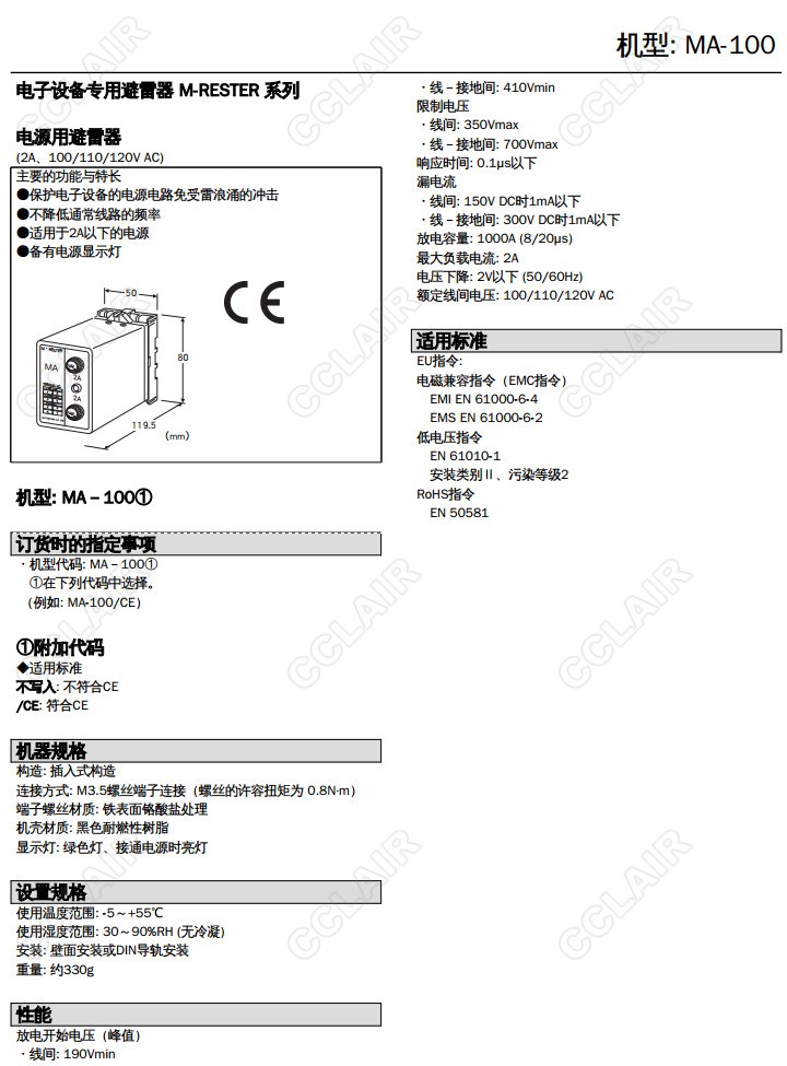 MA-100/MA-200,MA-100/CE,MA-200/CE,最大负载2A 插入型