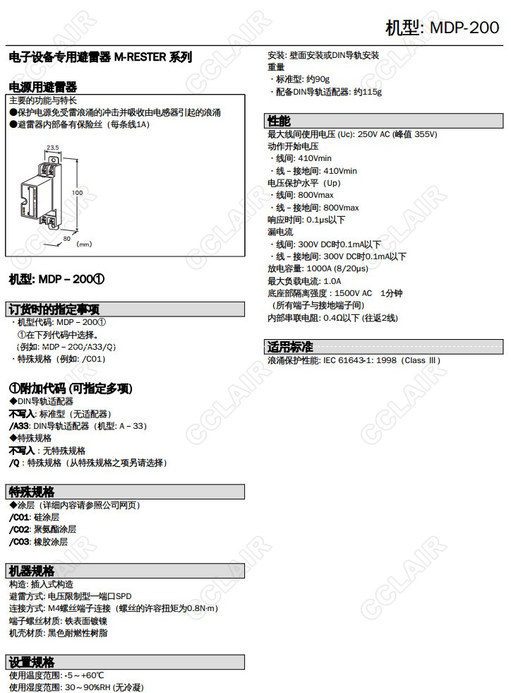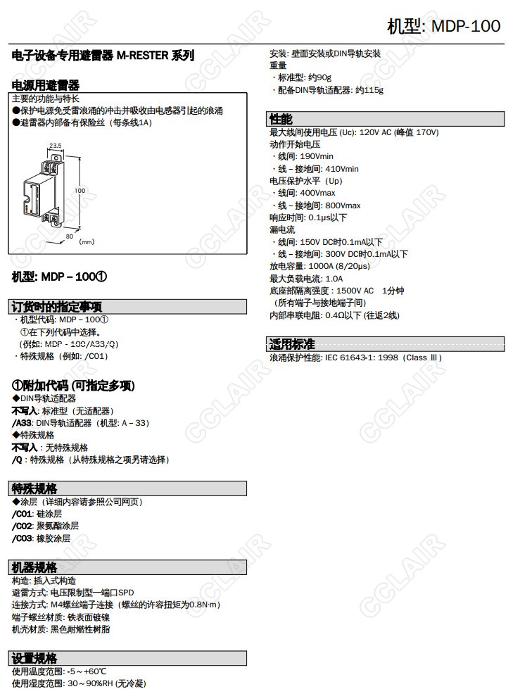 MDP-100/MDP-200, MDP-100/A33,MDP-100/Q,最大负载1A 插入型MDP-200/A33,MDP-200/Q避雷器