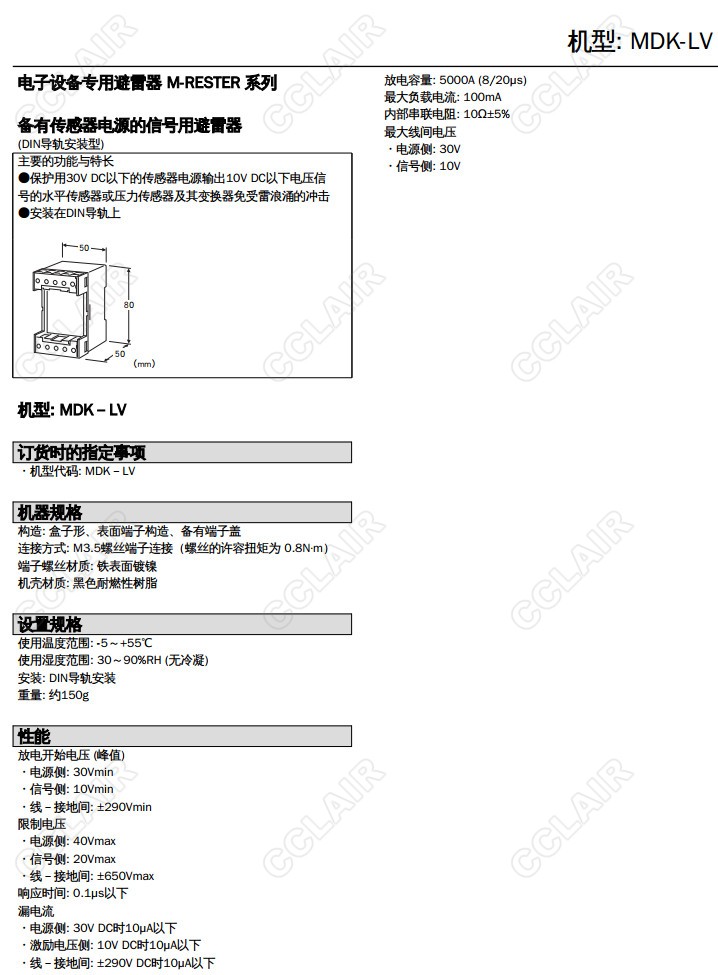 MDK-LV,自备传感器配电功能 信号用低位安装型避雷器
