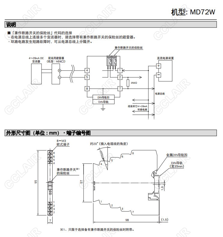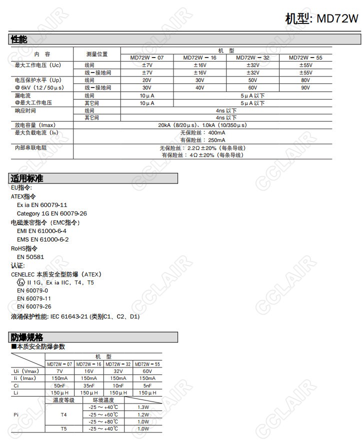 MD72W,MD72W-5500,MD72W-07,MD72W-16,MD72W-32,MD72W-55,2线制信号用避雷