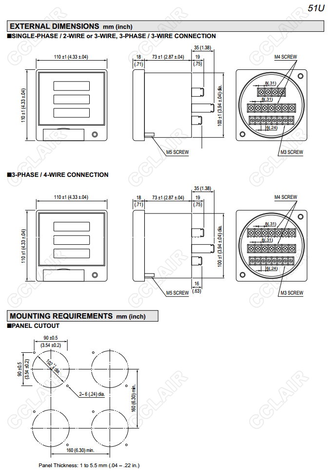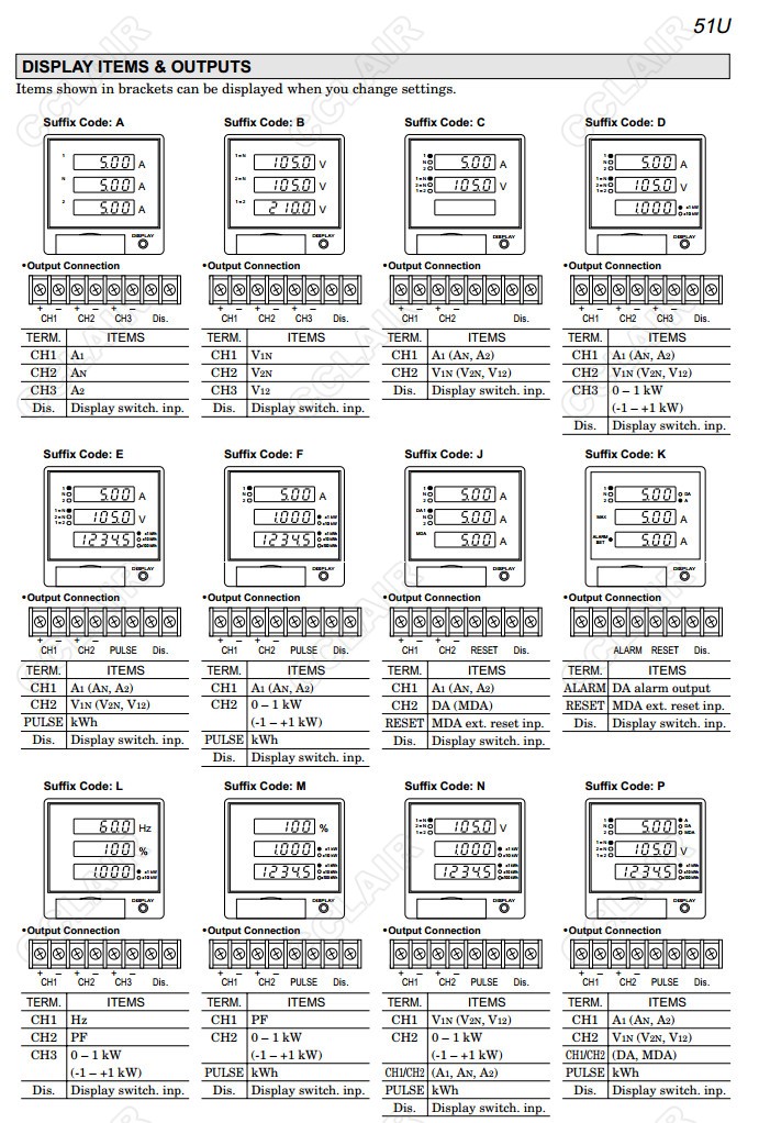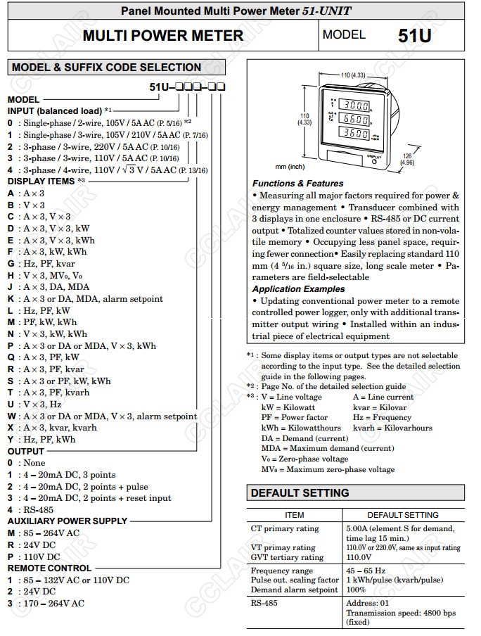 51U,51U-0,51U-1,51U-2,51U-3,51U-4,配电盘嵌入式多功能电量表