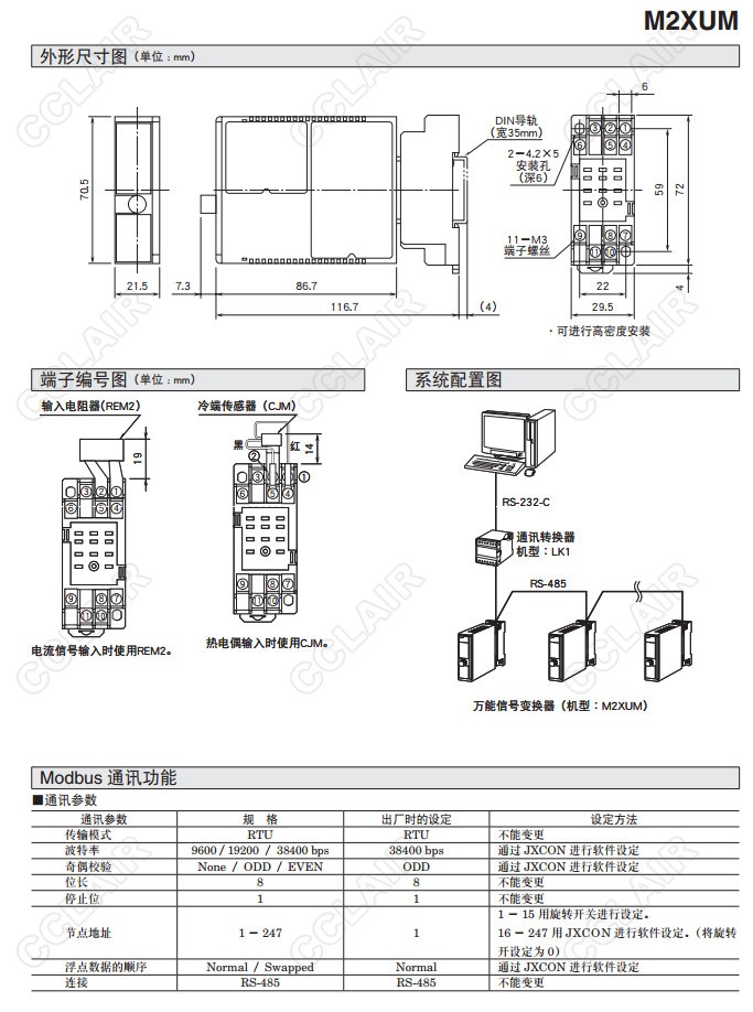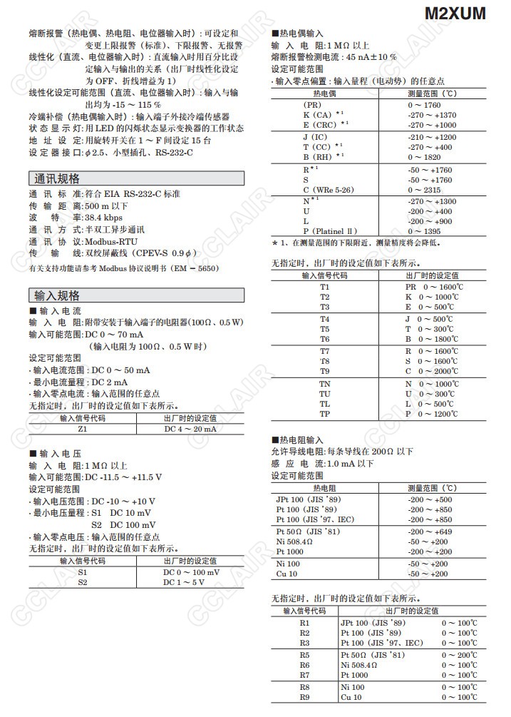 M2XUM,M2XUM-Z1 Z1,M2XUM-S1 Z1,M2XUM-S2 Z1,M2XUM-Z1 Z1,万能输入变换器(PC编程型、Modbus通讯)