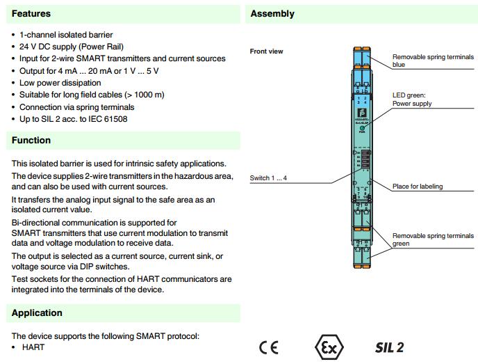KCD2-STC-Ex1.HC.SP,模拟量输入安全栅