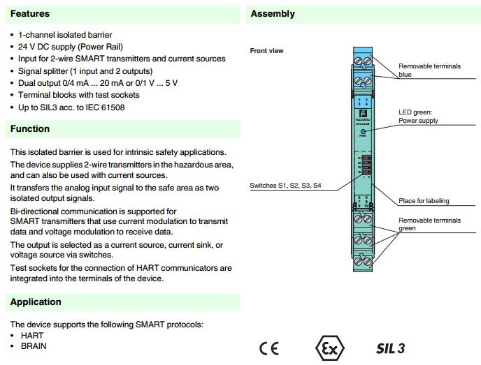 KCD2-STC-Ex1.2O.ES,模拟量输入安全栅