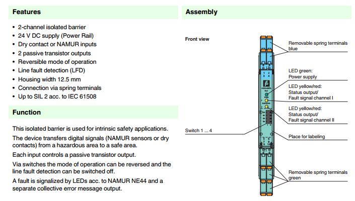 KCD2-SOT-Ex2.SP,开关量输入安全栅
