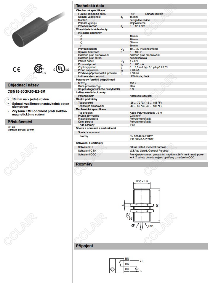 CBN15-30GK60-E2-5M,电容式接近开关