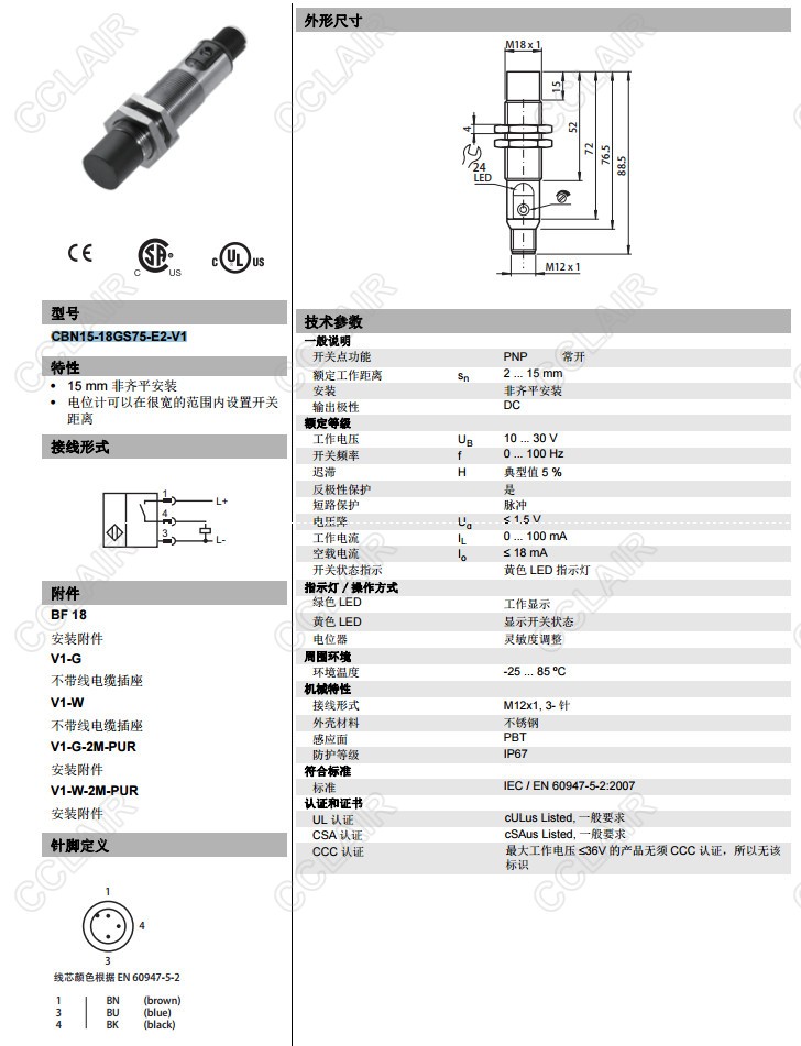 CBN15-18GS75-E2-V1,电容式接近开关