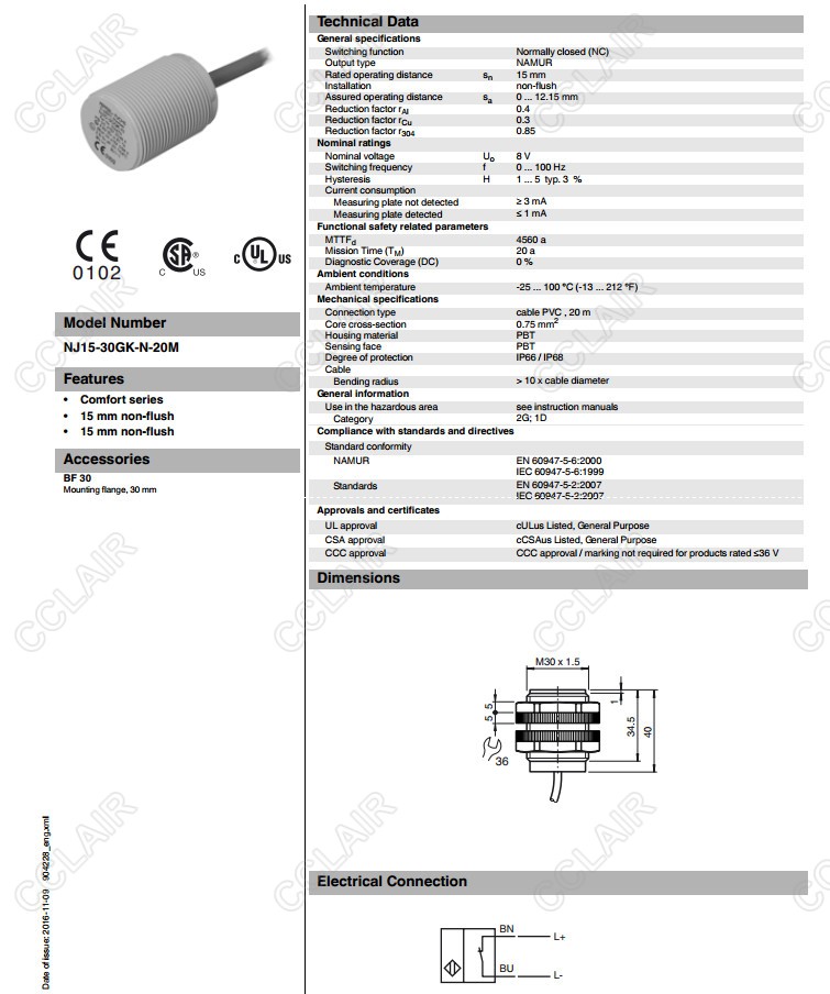 NJ15-30GK-N-20M,NJ15-30GK-N-Y08943,电感式接近开关