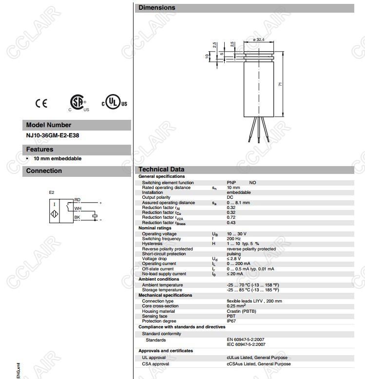 NJ10-36GM-E2-E38,电感式接近开关